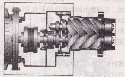 我不知道你们发现没?此类型空压机的气缸里面有两个按一定传动比反向旋转又互相啮合的螺旋形转子互相并列。按照图片来看,节圆外具有凸齿的转子称为阳转子;节圆内具有凹齿的转子称为阴转子。